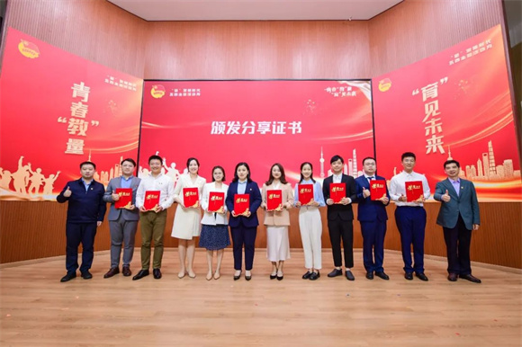 张伟同志、任浡同志为十名青年教师颁发分享证书。少先队员代表献上鲜花并表示将接过时代接力棒,学习奋斗精神,展现青春风采。
