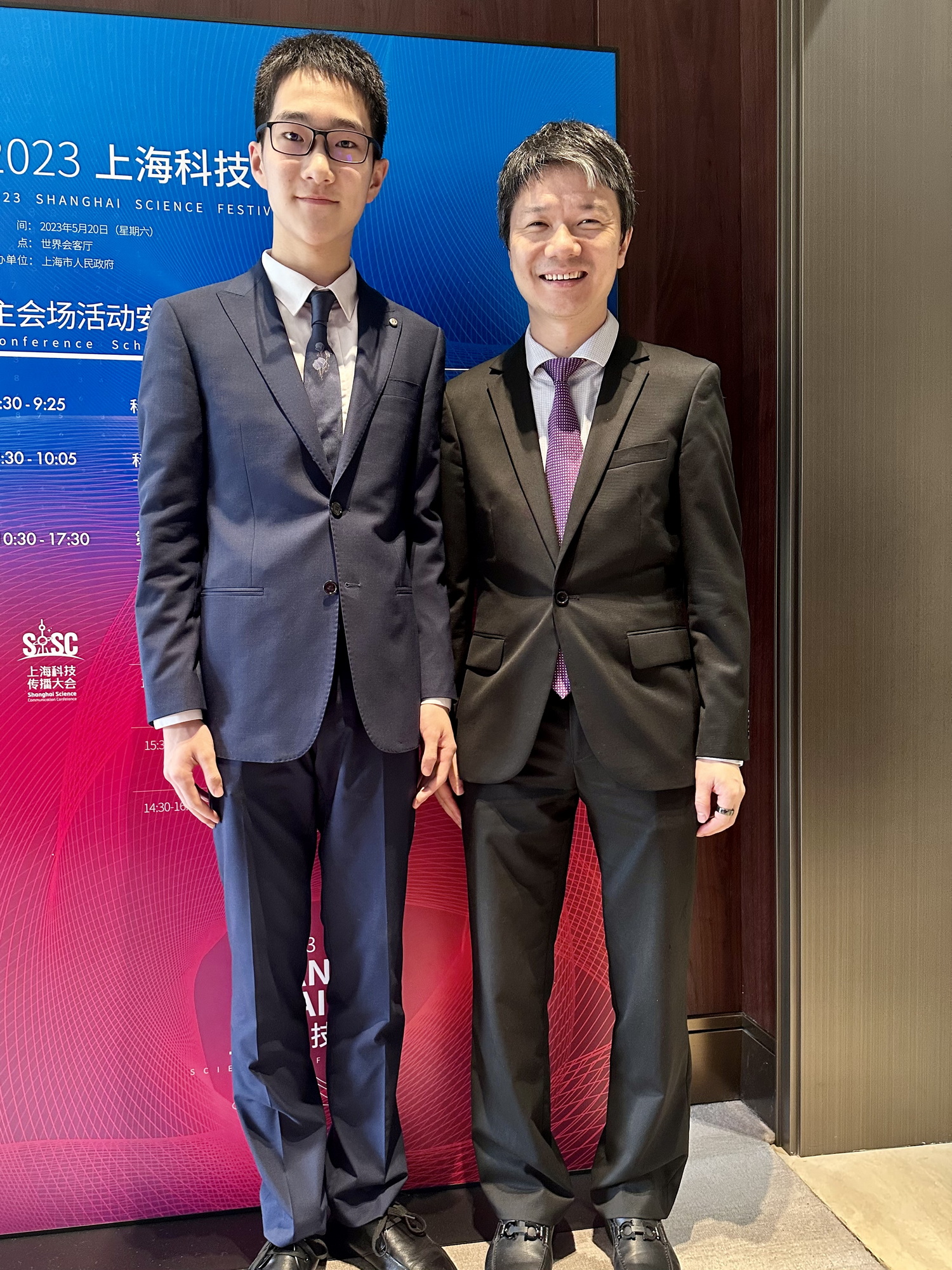 郭家晔(左)“科技追星”。  受访者提供