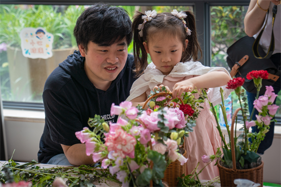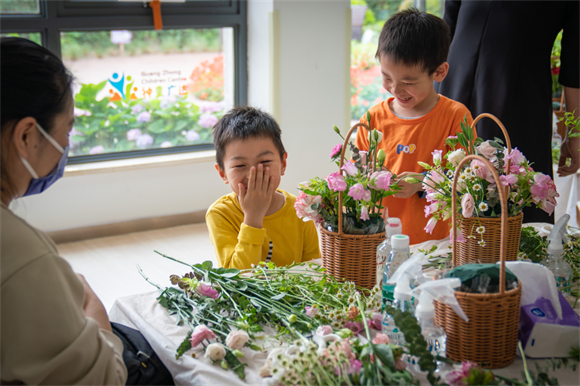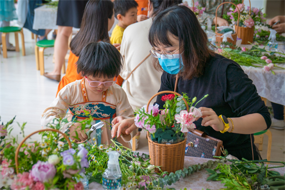 活动还邀请到专业插花师黄诗雯来讲授插花技艺。黄老师用通俗易懂的语言对插花艺术进行了讲解,并精心指导家长和孩子们一起动手,鼓励亲子家庭充分发挥想象力和创造力,将一枝枝心仪的鲜花和绿叶搭配组合起来,在亲子合作中完成一盆盆美丽的花卉。家长们表示,让孩子们亲身体验插花的艺术,可以树立孩子的自信心,帮助他们提升审美能力。