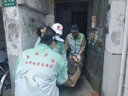 淞南八村居委组织社工、物业工作人员、志愿者对小区内存在的各类环境卫生问题进行全面排查整治。前期,通过社区通、楼道群在小区范围内招募居民志愿者,得到积极响应。大家手持工具,在绿化带、主要道路两侧、垃圾厢房等重点区域开展清整,在易滋生蝇虫的点位安装悬挂式捕蝇笼。针对楼道内堆放铁质框架、废弃木板等杂物的情况,及时进行处置,消除潜在安全隐患。