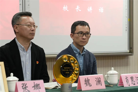 魏澜校长热烈欢迎华东师范大学肖思汉博士和浦东教发院张娜科研员参加“德智融合”课例研究工作坊的开坊仪式,并向所有成员颁发了“人民教育家”于漪老师亲笔题词的纪念像框,以激励教师们积极参与深度教学研究。