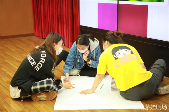 教育戏剧习式的应用是为了更好地解决实际问题,为此金老师邀请在场教师最后通过情景演绎的方式将案例呈现出来,让老师们能够更好沉浸在案例中的角色中,更能相互交流扮演不同学段的孩子们,对于相同案例的不同反应,从而讨论在实际生活中解决此类问题的最佳方案。
