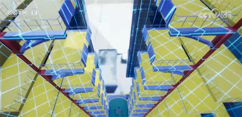 90多米高的厂房一通到顶,中间有十多层工作平台,方便工作人员进行操作。