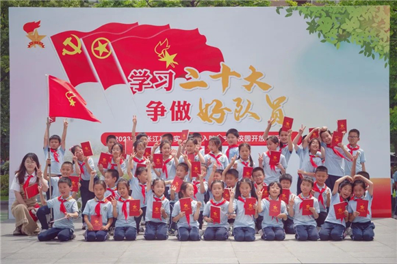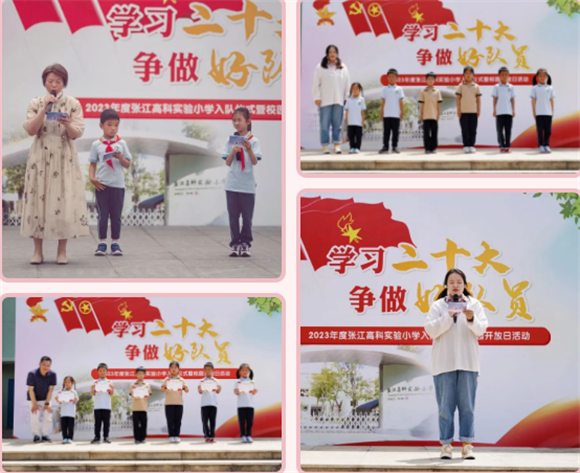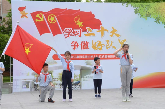 为加强对少年儿童的思想引领,激发新队员的光荣感、责任感,继承和发扬中国少年先锋队的光荣传统,增强学校少先队组织力量,发展中国少年先锋队队员,6月1日上午,张江高科实验小学举行了2023年“学习二十大,争做好队员”入队仪式。