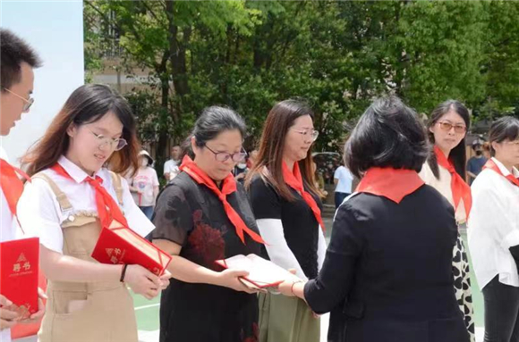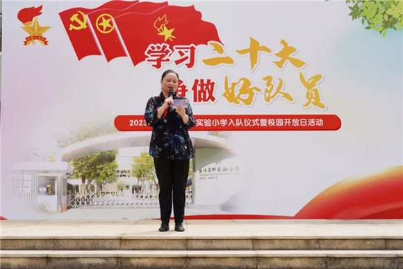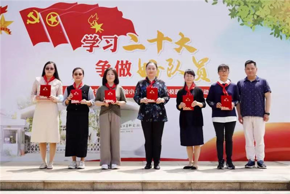 党创立了少先队,并委托共青团直接领导我们队,习近平总书记一直教导队员们要听党的话,跟党走。学校党支部支委会成员、课程创新中心主任胡梁老师和副校长陈蕾老师送给新队员们三个希望。