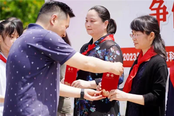 又有一批热爱少先队的老师们成为了队员们的中队辅导员,他们将成为队员们成长道路上的亲密伙伴,他们是香楠校区的金中丽、刘文菊、吴琛昵、夏蓓芳、朱佳珺和孙佳老师以及藿香校区的张宇昊、吴佳弈、张红月、陶燕丽、许筱英、潘王平和朱寒奕老师。