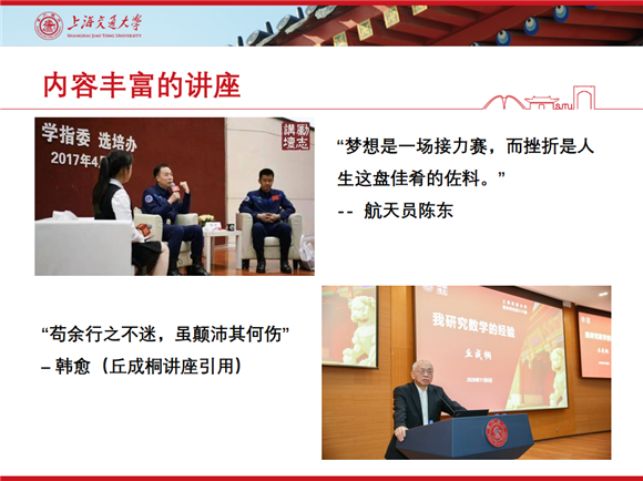 高科实小邀请香楠校区二5班马芊诺爸爸介绍他的母校——上海交通大学。马芊诺爸爸用幽默风趣的语言打动了高科学子们向往大学的心:“假设我们学校是一个长方形,那么交大就有152个香楠校区这么大,逛校园是一个大工程,所以上海交通大学又被称之为上海‘脚痛’大学。”伴随着笑声,不少学生默默记下了这一所美丽的大学,并心向往之。