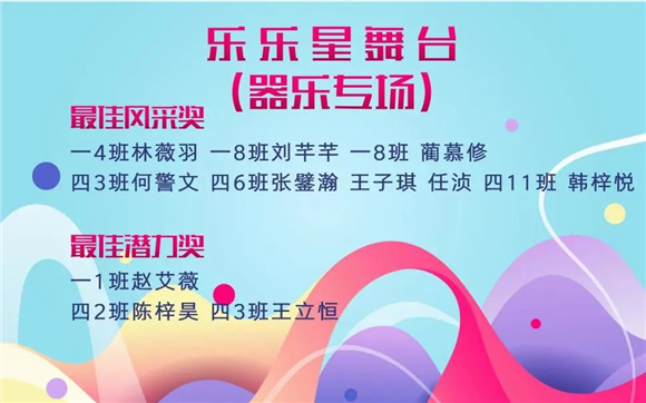 浓烈的艺术氛围之下,各班师生百花齐放、独具匠心,将未来的梦想投射在当下,一张张证书的背后,是乐乐们对艺术执着地追求。艺术节中的优秀节目展示。