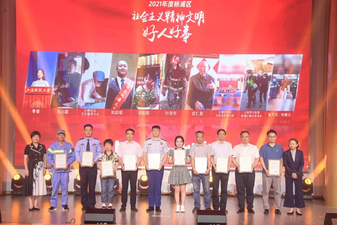 郭俊、卢刚发布上海市“新时代好榜样”主题巡展内容。李猛、顾毓静、施方、顾登妹为杨浦区社会主义精神文明好人好事颁发证书和奖牌。全国道德模范、中国好人、上海市社会主义精神文明好人好事代表作交流发言。
