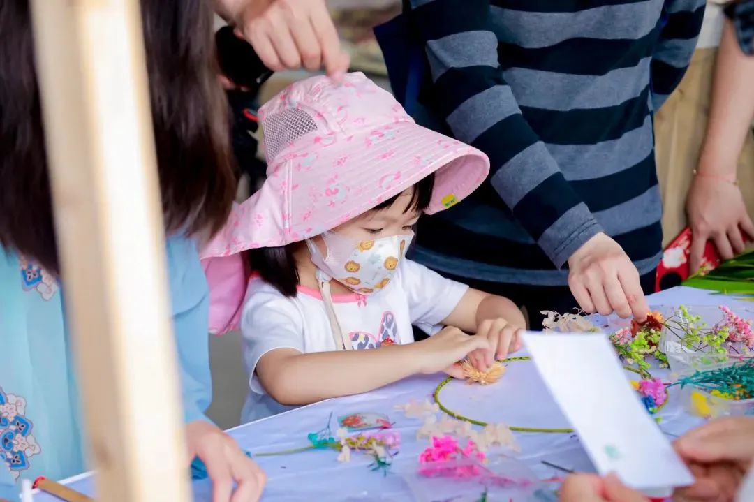 本次活动现场还设置手工制作端午香囊、艾草花束和干花团扇的互动摊位,以这种特殊的方式,祝福大家拥有一整个清爽的夏季。此外,来自惟礼文创的中国结结艺师米老师指导大家用中国传统技艺编织中国结来完成端午五色手链。还有中国美院版画系专业研究生王子老师指导大小朋友们体验篆刻版画端午团扇制作。
