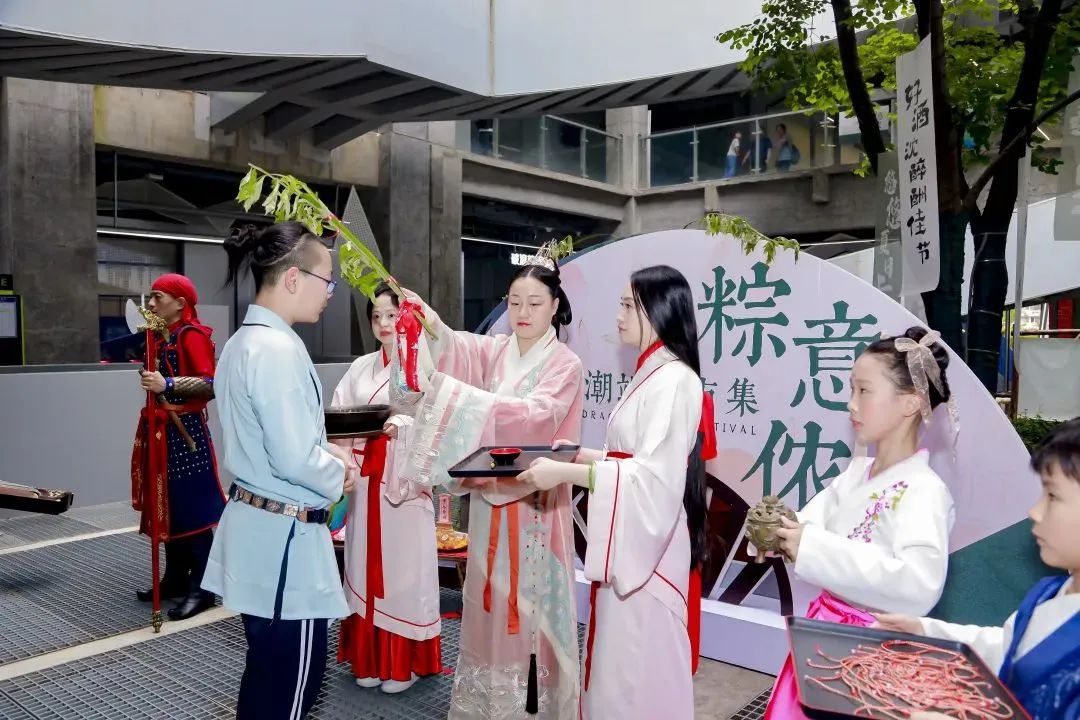 有趣的“射五毒”活动、汉服活动也吸引许多市民参与其中。“粽意侬”红潮端午市集希望以汉服秀展示,提高人们对传统服饰的了解与热爱,进一步提升人们的文化自信。