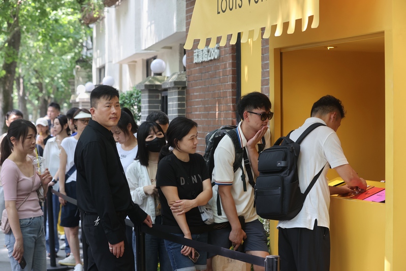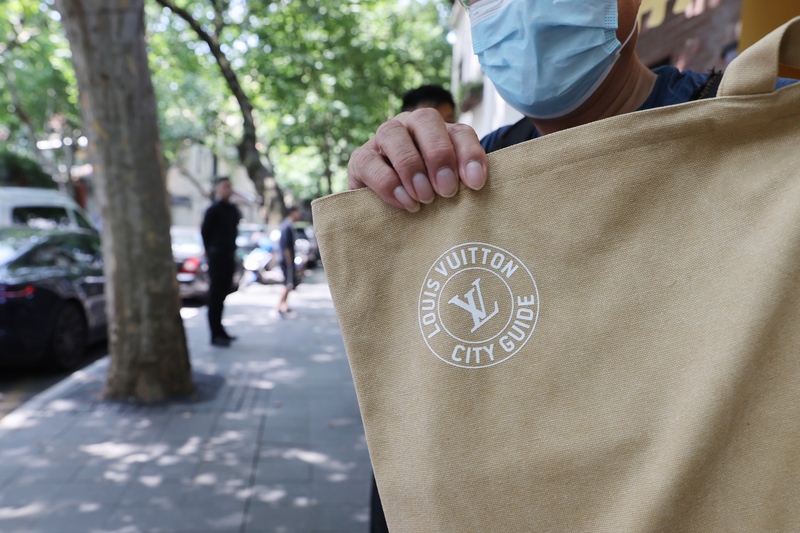 在武康路上排队半小时的女孩拿到心仪的帆布包。