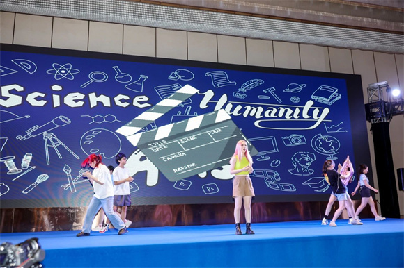 接下来,高田甜,江艺,季振诚,陆逸萱,祝于皓,王海鑫,向玺文,吴盈莹,薛熳璇,孙邦捷和王厚瑜等11位毕业生为我们带来了精彩的歌舞表演《高中结业》。他们唱着《SeasonsofLove》,是啊,我们如何衡量高中这三年转瞬即逝的光阴:in daylights in sunsets,in midnights in cups of coffee,in inches in miles,in laughter in strife.以度过的日出日落,以静谧夜晚与香醇咖啡,以路途的或近远,以经历的欢笑争执。