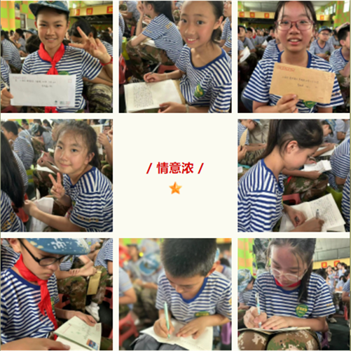 活动过程中,世界星们一次次完成成长与蜕变,展现出别样的风采。经过军训的洗礼,他们有了更加坚毅的目光,也有了自己独特的体验。在写家信时,世界星们纷纷拿出准备好的信纸和信封,写下了自己对于父母长辈的感恩之情。一字一句,诉说着最质朴的亲情。看着他们低着头,认真书写的模样,老师们不禁感叹:孩子们真的长大了!