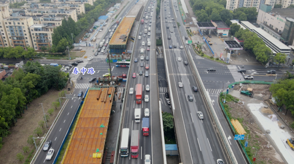 为尽量减少施工过程中对高速和周边路网的影响,S4主线高速抬升施工前,先在现状高速两侧分别新建三车道的保通道路,实现“占一还一”。目前东侧保通道路已完成80%,预计8月翻交启用,西侧保通道路已完成45%,预计11月翻交启用。