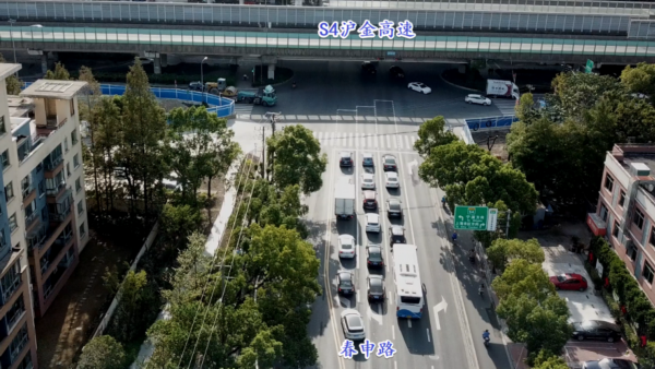 优化后的S4与春申路路口处航拍(方向:上西下东)