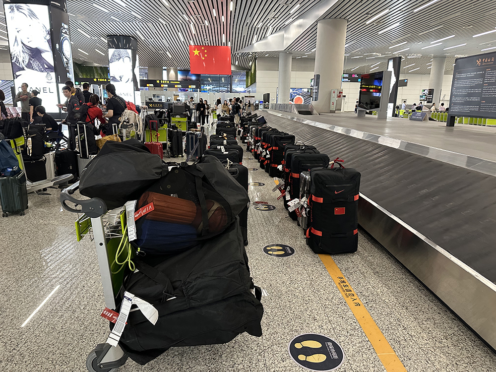 南航介绍,为做好中国女篮的接机工作,他们加派业务骨干,提前联动白云机场联检部门,开设“绿色通道”,在航班到达前做好保障准备,安排专人协助队员填写海关健康申报,提供全流程入境指引,并划分行李服务专区,缩短行李等待和提取时间。