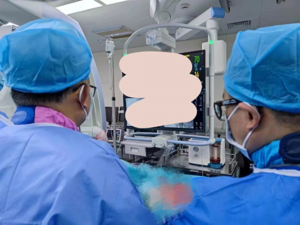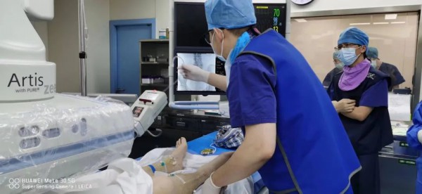然而,我毕竟病症积重日久,加上自己不注意,大腿部透析管置处血管血栓形成,大腿肿胀、坚硬如柱,经B超检查存在多个血栓块。这些血栓块如在透析过程中随血流进入肺部等处,将危及生命。医生向我说明情况后,我刚看到的生命之光似乎又是昙花一现,仿佛沉重的乌云压住心脏、遮住双眼,我又一次拒绝了医生护士们的好意。看着肿胀如柱的大腿,我喃喃道:“没救了,没救了!”面对我的绝望,医生护士们再次做我的思想工作。终于,在医生们的开导下,6月21日17:30,我被送进导管室重新做透析留置管,并在血管内植入防栓网以防血栓进入身体要害部位。
