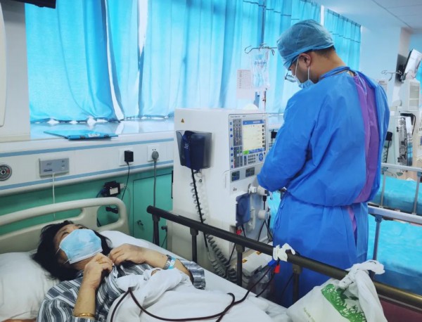 我叫崔玉珠,女,76岁,饱受尿毒症、高血压、高肌酐、高磷、低血糖、低蛋白、严重贫血等一系列并发症折磨的我,由于一直拒绝透析治疗,以致病情一路恶化,最终在数日里肺部严重感染,咳嗽、胸闷、气急、呕吐、大小便皆无。在坐也不能、睡也不能的情况下,6月10日,我又被兄弟姐妹们紧急送往上海中冶医院救治。