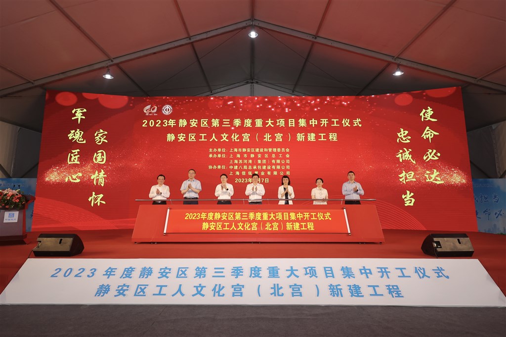 7月7日,静安区举行第三季度重大项目集中开工仪式,全面启动下半年重大项目建设推进工作。本次集中开工的4个区重大项目分别是静安区工人文化宫(北宫)、天目社区C070102单元07-03地块住宅项目、曹家渡社区C050301单元4-3b地块项目和中兴社区C070202单元304-03地块商住办及配套设施项目。