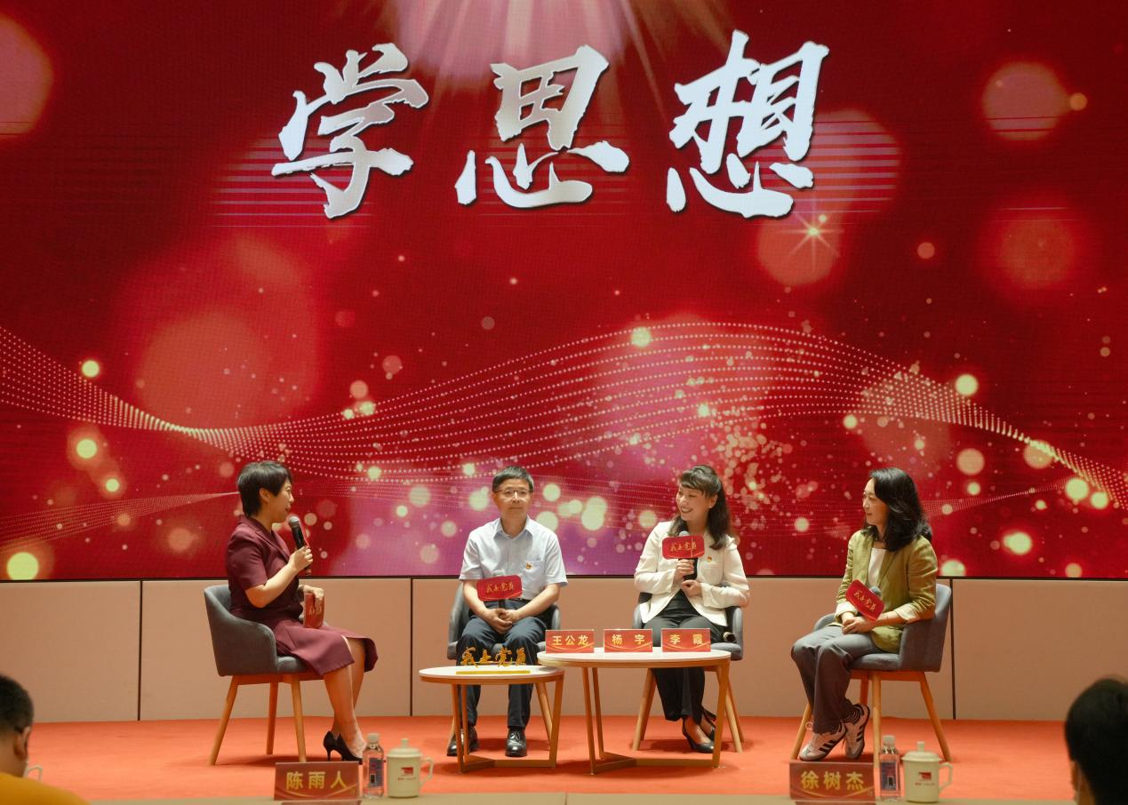 在“学思想”板块,上海市委党校马克思主义学院执行院长、上海市习近平新时代中国特色社会主义思想研究中心副秘书长、上海市优秀共产党员王公龙,以及中共一大纪念馆宣传教育部主任、党的二十大代表杨宇,分别从党的理论研究、历史回顾两个不同方面,全面、系统、深入学习贯彻习近平新时代中国特色社会主义思想,全面把握这一思想的世界观、方法论和贯穿其中的立场观点方法,深刻理解这一重要思想的道理学理哲理,在“党的诞生地”感悟初心与使命,传播思想伟力。