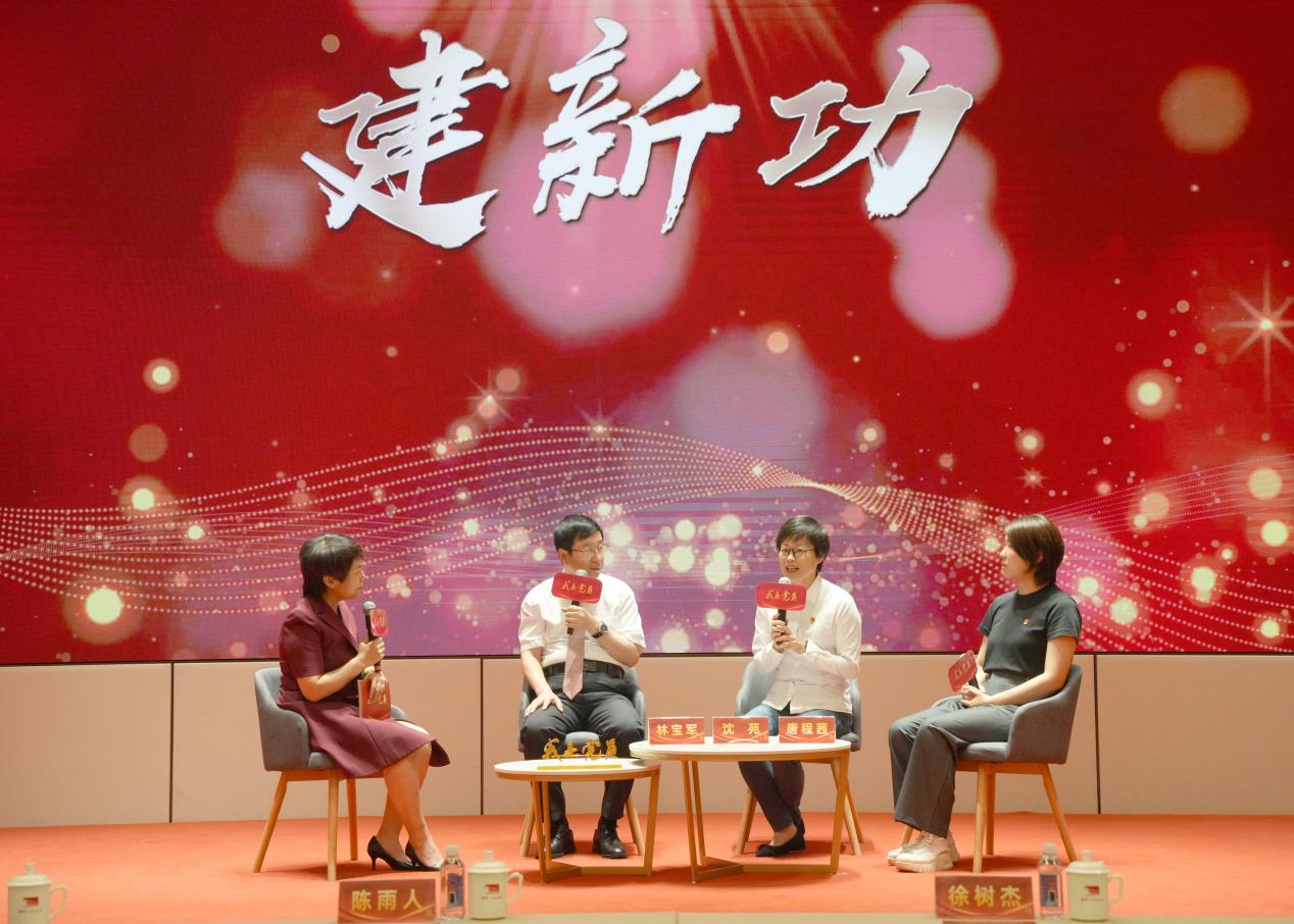 在“建新功”板块,中科院微小卫星创新研究院副院长、北斗三号卫星系统总设计师、全国首届创新争先奖状获得者、上海市优秀共产党员林宝军,以及中科院微小卫星创新研究院导航卫星总体研究所所长、全国三八红旗手沈苑,分享了中国科技实现一个个重大突破,实现中华民族的伟大复兴要靠实干。以初心与传承展现了上海优秀党员代表紧紧围绕新时代新征程党的中心任务,胸怀“国之大者”,以新气象新作为推动高质量发展取得新成效,依靠顽强斗争打开事业发展新天地。