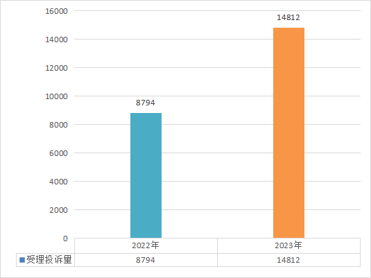 根据投诉所涉类别统计,商品类投诉5303件,占投诉总量的35.80%,同比2022年增长31.82%;服务类投诉9509件,占投诉总量的64.20%,同比2022年增长99.31%,增幅显著。