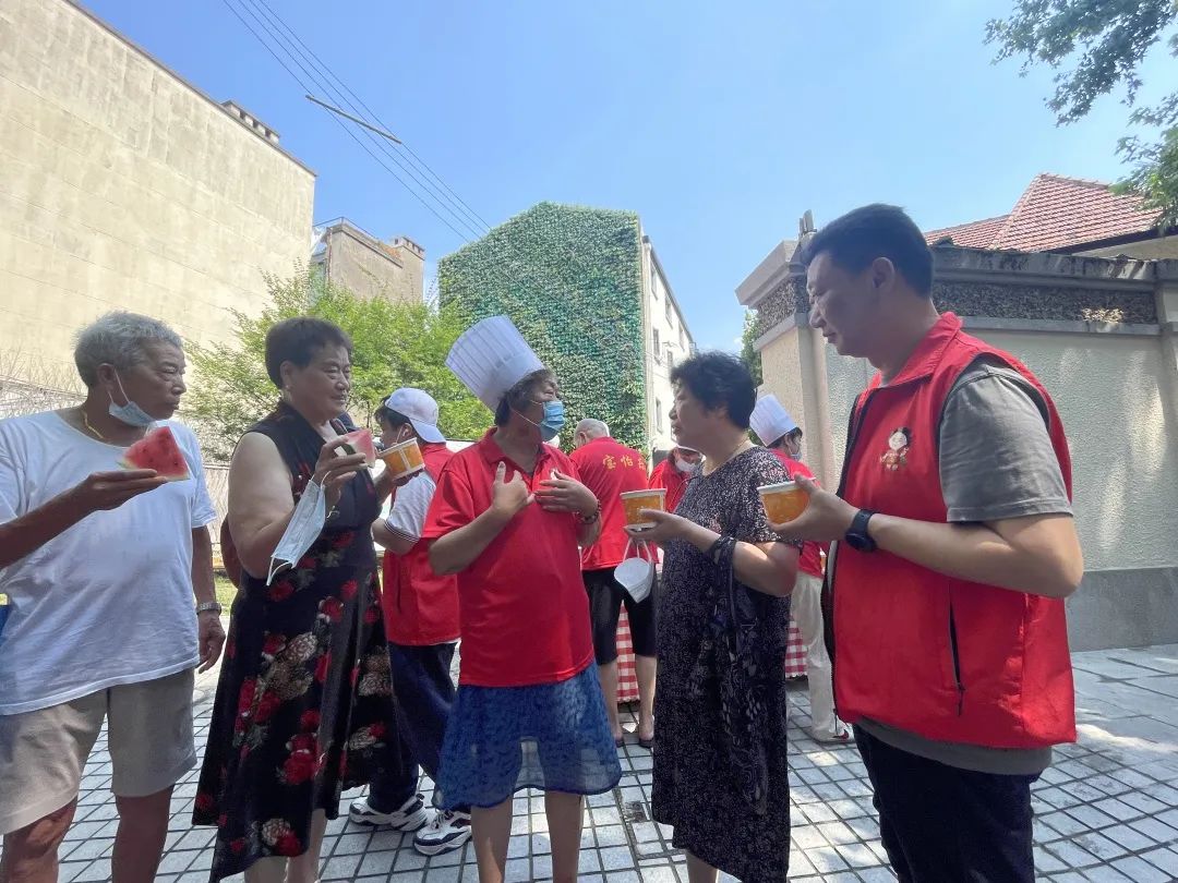 快递小哥小孙送货时经过,就被阿姨们热情吆喝来,他告诉记者:“吃了冰西瓜,喝了绿豆汤,感觉很舒服!”已经在永嘉路负责十多年环卫工作的周阿姨说道,“虽然天气很热,但是我们感觉很清凉,真的很感谢她们。”社区老人则表示,“天冷送赤豆汤、天热送绿豆汤,每个节日她们都会做,坚持下来很不容易!”