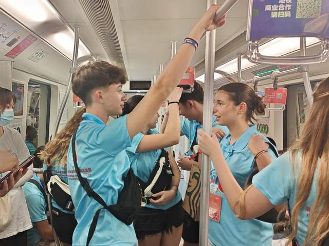 作为了解上海、融入上海重要的途径,乘坐地铁打卡上海地标可以帮助来自不同国家的青少年体会这个城市的日常,感受这个城市的脉搏。参加此次活动的营员被分为六个小组,在志愿者的引导、帮助下搭乘地铁亲自来到上海地标打卡、参观。尽管近日上海的天气比较炎热,但依然阻挡不住大家的热情。