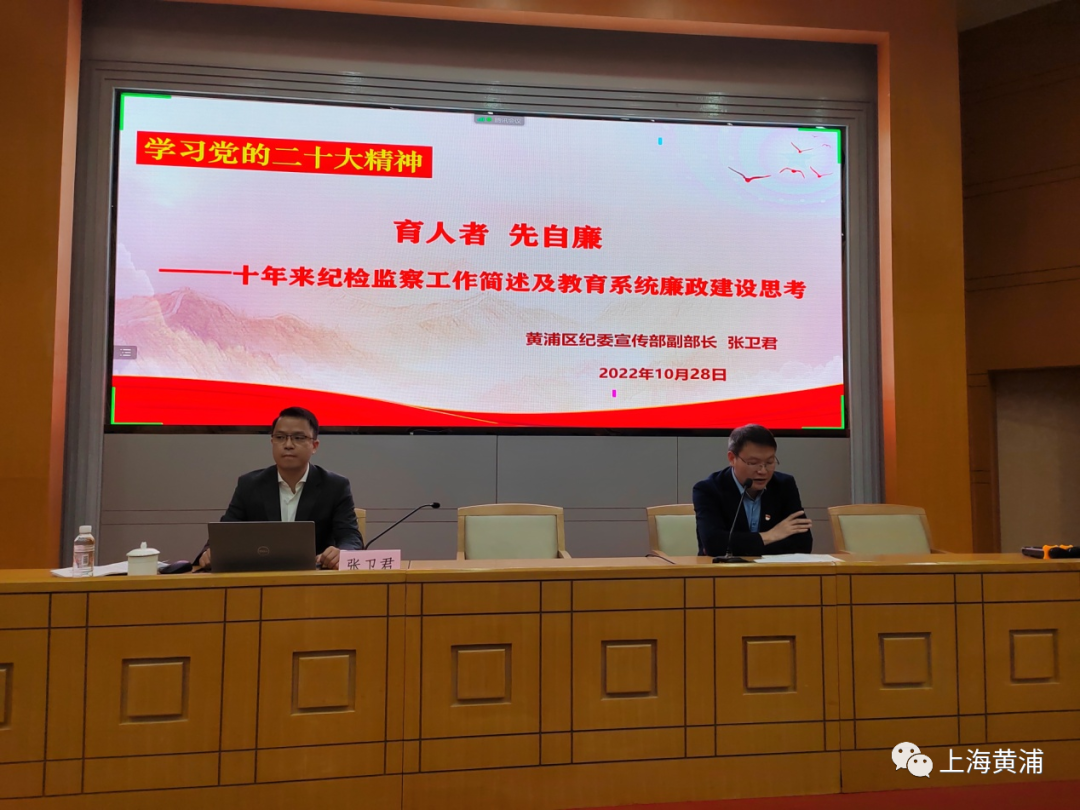 顾博凯老师作为“师说”理论宣讲团团长,带领黄浦区优秀教师一起宣讲红色故事和二十大精神,在师生心中播撒理想信念的种子。学校还专门成立了以党员教师为主的“人文教育工作室”和“新青年讲师团”,先后推出了一批有质量的网络课程,如《先驱》(两季)、《铭记》系列课程等。