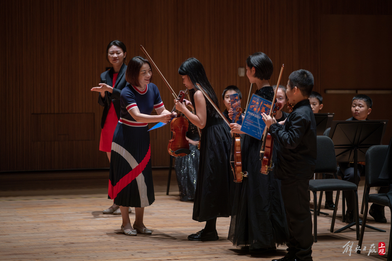 在乐团成立之初,来自上海交响乐团的演奏家们就组成了“导师团”,从分声部手把手地进行训练指导,到公演日当天下午的乐队彩排,都能看到这些老师们陪伴在侧,悉心指导的身影。