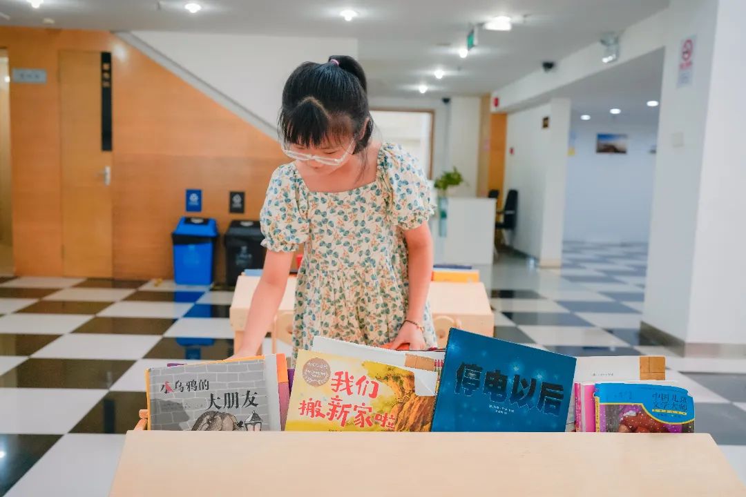 在二楼的儿童阅览区,题材繁多、封面缤纷的儿童读物和绘本整齐地列在书架上。快趁这个暑假带娃前来,一排排挑过去,总有孩子感兴趣的那一本!