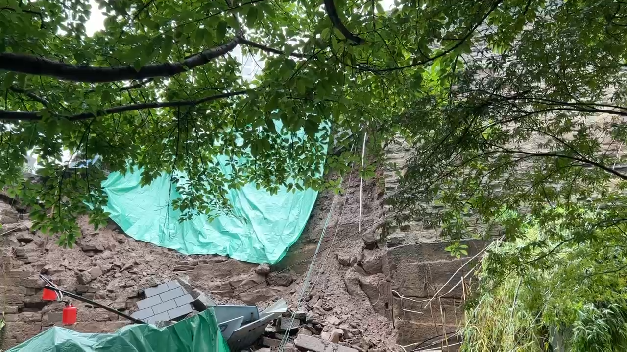 重庆暴雨致全国重点文保单位通远门城墙局部滑坡,周边已设立围挡