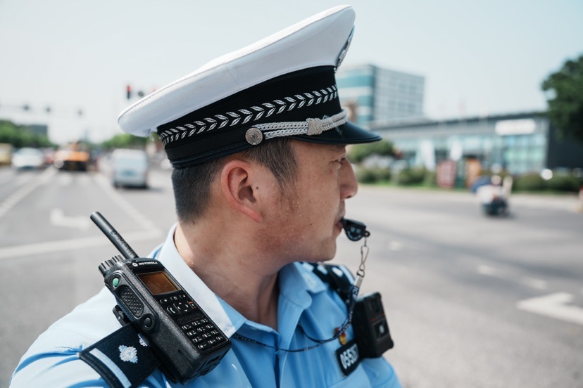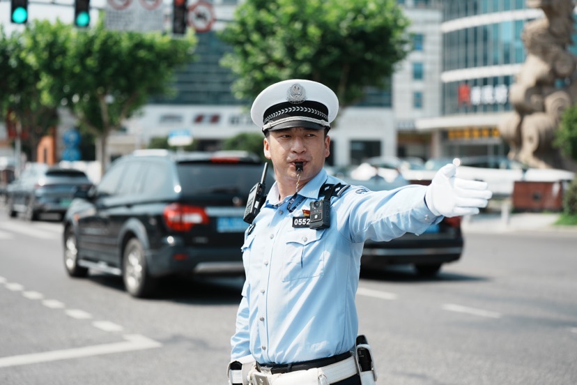 高温下 公安交警“汗”卫安全不服“暑”