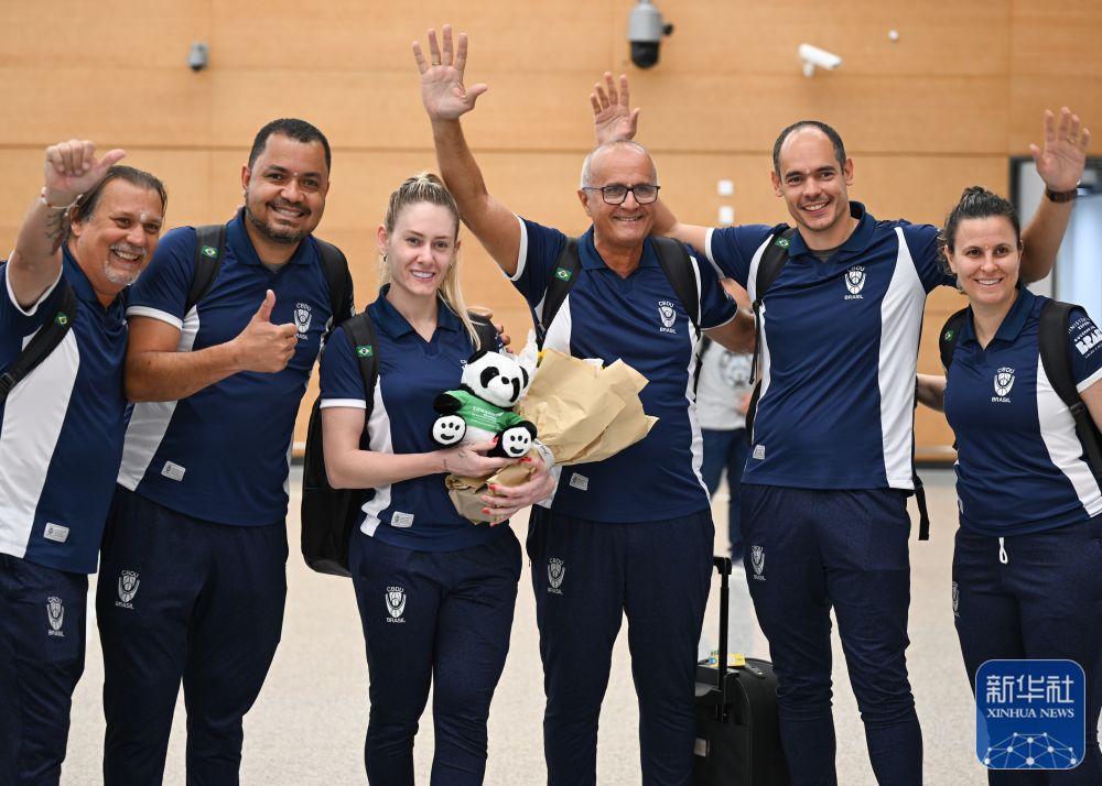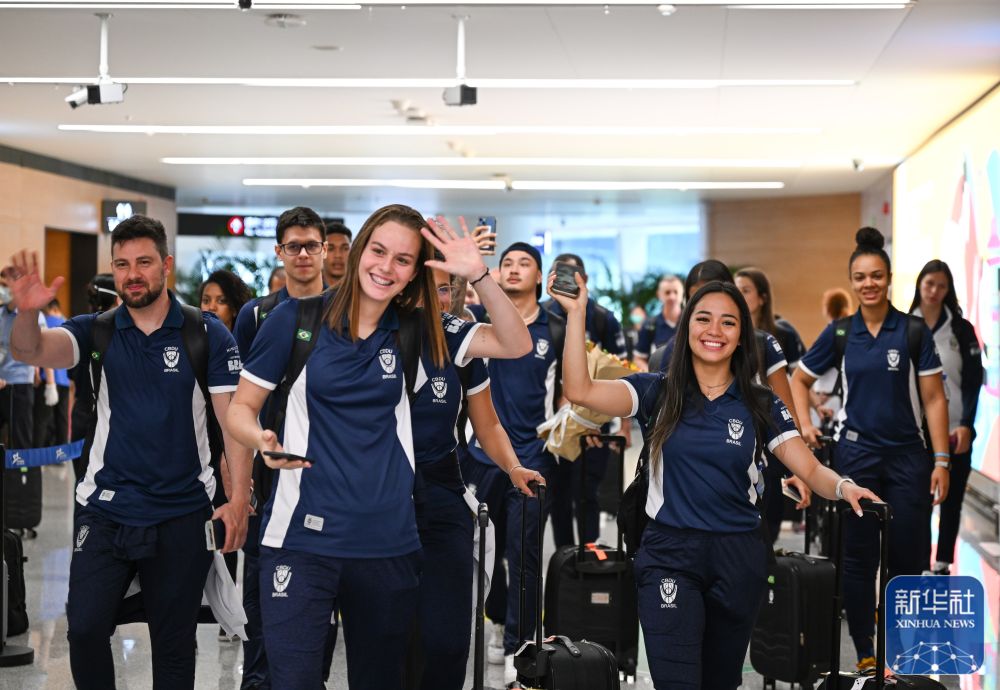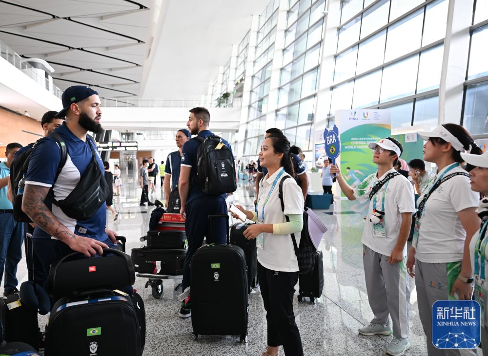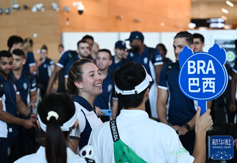 ↑7月21日,巴西代表团运动员抵达成都天府国际机场。