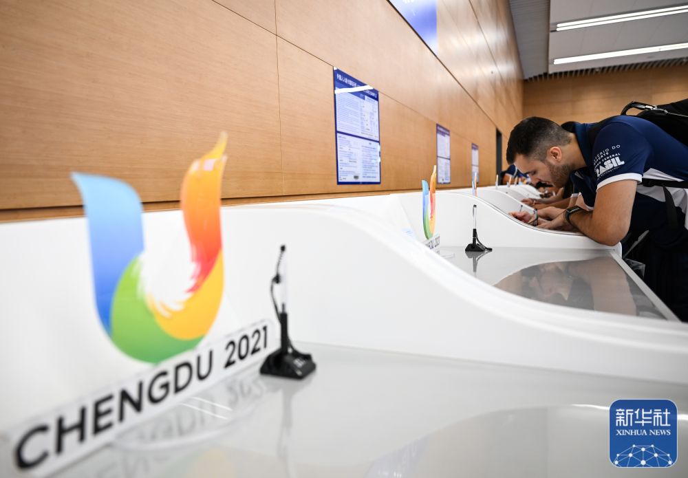 ↑7月21日,在成都天府国际机场,巴西代表团的运动员在办理入境手续。