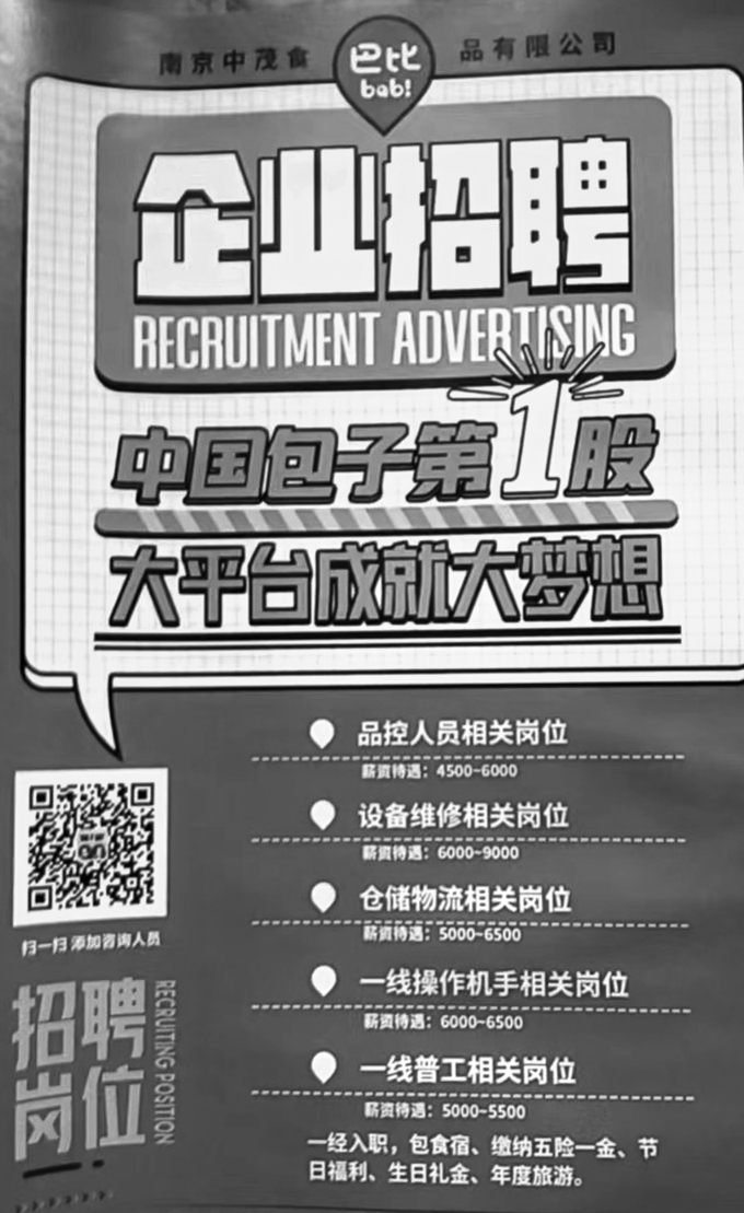 南京中茂食品的招聘海报
