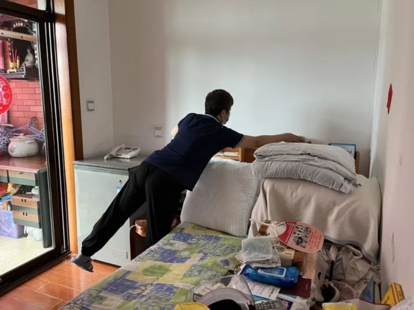 小程名叫程翠华,是淞南镇为老服务中心的一名居家养老服务人员,为孤老提供免费上门服务。因为楼阿姨在预约时就已说明需求,程翠华进门后打过招呼就开始忙碌起来。扫地、拖地、铺床、擦灰、整理桌面、烧菜,手脚十分麻利。