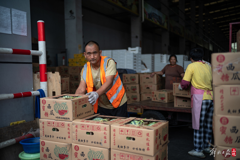 新上市的精品西瓜价格便宜。