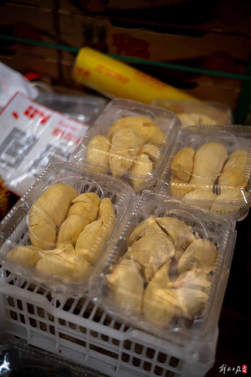 受不了榴莲开盲盒般的刺激,想要追求性价比的消费者可以买店家直接开好装盒的榴莲肉。这些榴莲肉也是当日现开的,一盒2斤,只要65元。果肉多数是从个头小,卖相差,已经开裂的榴莲中所得,但是品质和新鲜没话说。