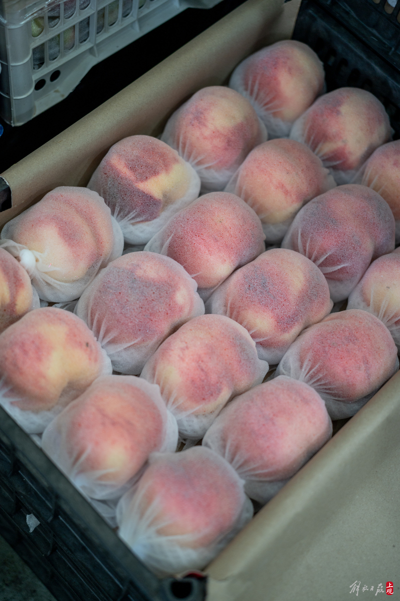来自河北的水蜜桃个头巨大,一只就重达1斤多。
