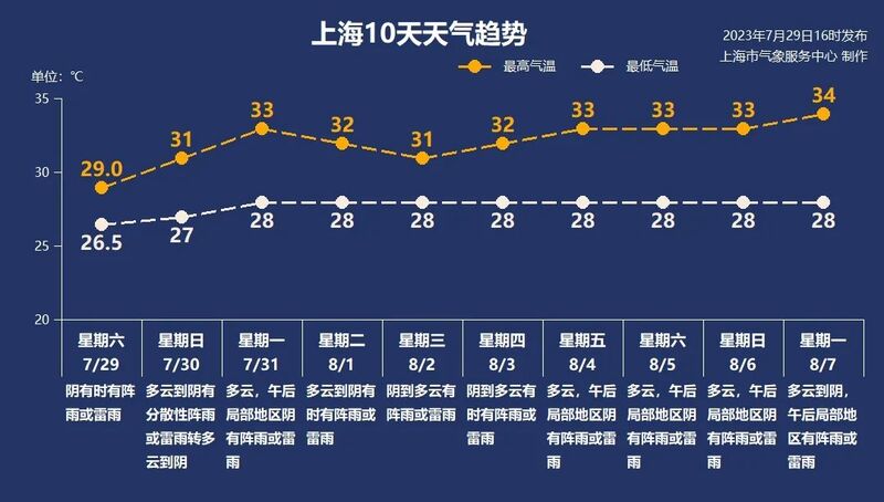 明天,申城多云到阴为主,分散性阵雨或雷雨,总体而言降水减弱。气温有所回升,最低27℃,最高31℃。