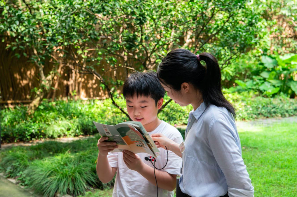 “欢迎大家来到巴金故居,走进’家门口的博物馆’,探访巴金先生的家!接下来每个人会获得一本探访手册,请大家仔细翻阅,留意其中的问题和游戏,在我的讲解中慢慢寻找答案。”在巴金故居工作人员茹佳的带领和讲解之下,孩子们拿着手册进入巴金故居参观,带着任务听起了讲解。半个小时的参观,说长不长,但也要专心细致的态度,才能在后续的活动中胸有成竹、夺得先机。