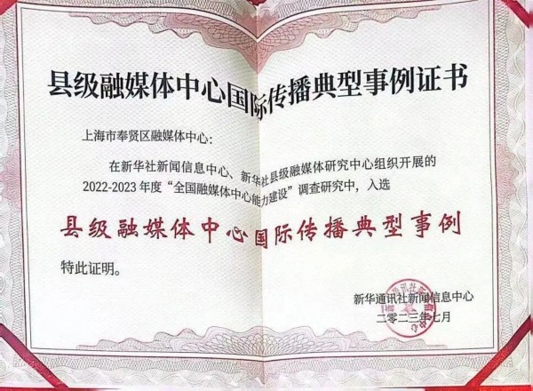 7月23日至25日,第三届市县融媒体中心建设发展论坛在鄂尔多斯市举行。论坛发布了“2022—2023年度全国融媒体中心能力建设典型案例”。其中,奉贤区融媒体中心入选“县级融媒体中心国际传播典型事例”。