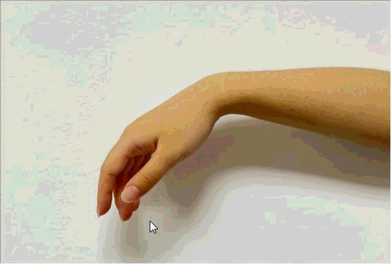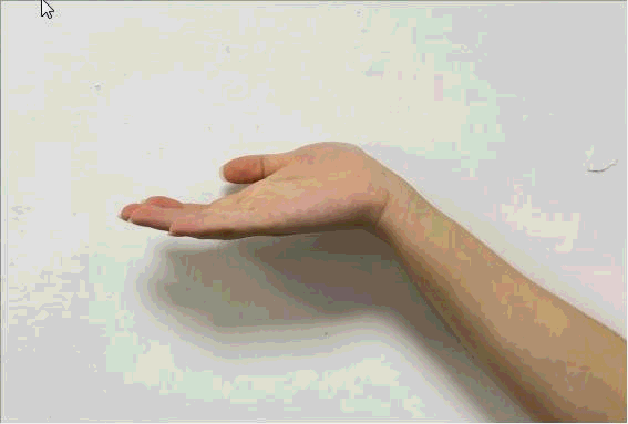 手掌向下,活动至末端,不要引起疼痛,保持5秒,恢复至中立位,重复10次。
