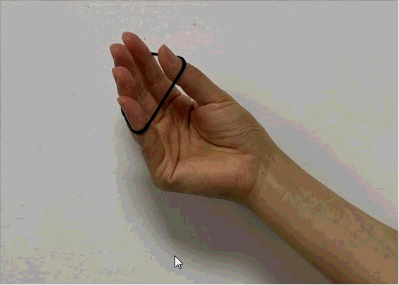 使用橡皮筋,固定于五指,缓慢张开五指,用力展开,保持5秒,缓慢放松,重复10组。