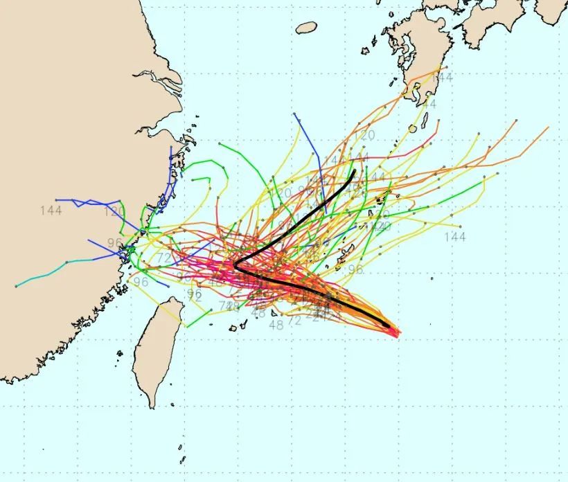 未来几天,对副热带高压形态预测存在分歧,加上海上对流活动活跃,导致“卡努”未来路径复杂多样。我们会密切跟踪监测,也请大家及时留意最新的台风信息。