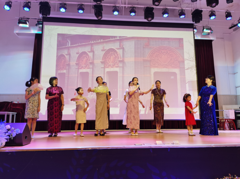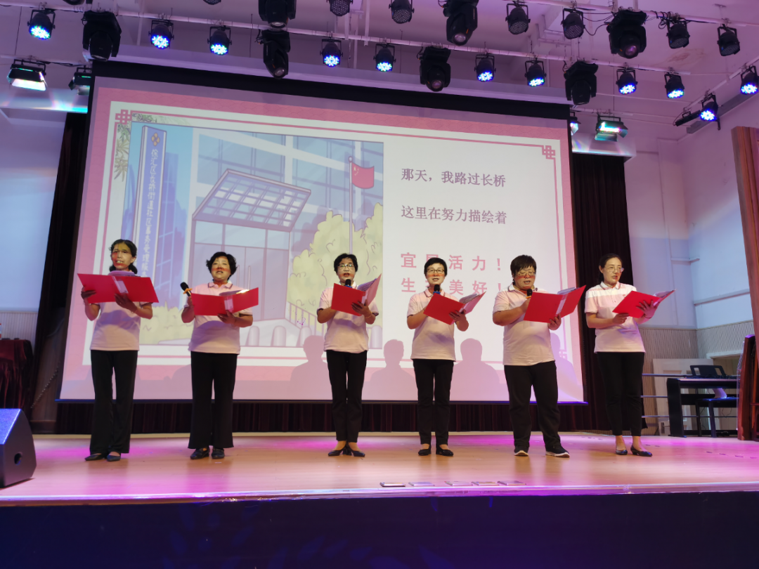 美好社区建设,需要聚合多方力量。晚会上不仅有社区志愿者的精彩表演,共建单位也积极参演。上海农商行职工赵玥璠用一曲《星辰大海》唱出了新时代新青年“眼有星辰大海,心有繁花似锦,以梦为马不负韶华”的奋勇而为的精神。长宁区文化艺术中心的林老师带领社区内老、中、少三代女性身着传统服饰旗袍,在《上海谣》的歌声中秀出了社区居民的生活自信,秀出了园三社区文化的自信。徐汇食品药品检验所、园南中学、工商外国语学校等共建单位在晚会现场送来了祝福。
