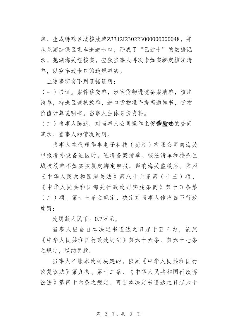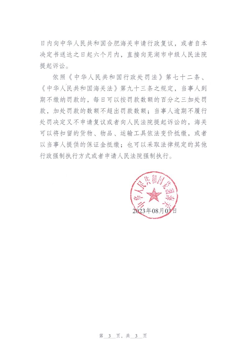 中国质量新闻网讯 近日从合肥海关网站获悉,芜湖海关发布行政处罚决定书(芜关缉违字〔2023〕30号),涉及芜湖邦达天原国际货运有限公司。