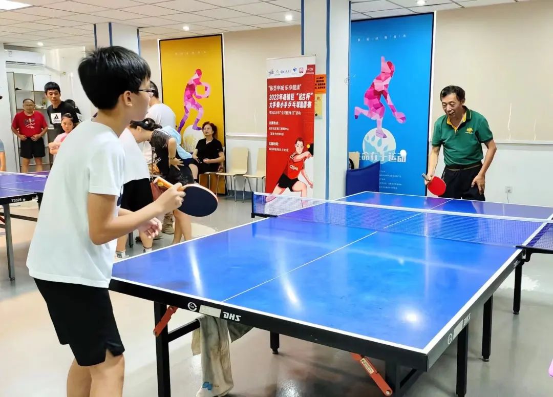 随着裁判员的举手示意,比赛正式开始。一开场是18组家庭组的亲子赛,既有爷孙俩同台竞技,也有母女之间的通力协作,选手们都把自己的绝活拿出来,你打直线,我给你弧线,比赛中不乏精彩的对决场面。听着乒乓球在桌上来回碰撞的声音,一球、一拍、一桌,方寸之间,激情挥洒,既享受身心,又强身健体。